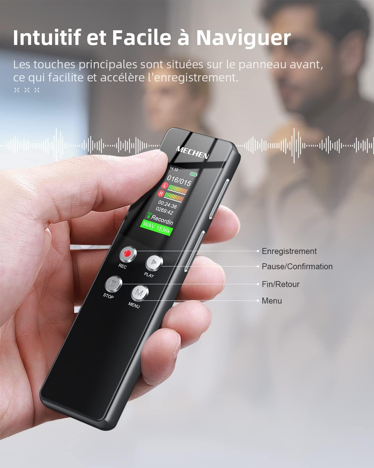 Cet enregistreur vocal professionnel offre une capacité de stockage de 64 Go permettant de conserver jusqu'à 750 heures d'audio en qualité HD (1536 kbps). Équipé d'une technologie de détection vocale automatique (VOR), il démarre l'enregistrement à la reconnaissance de la parole et élimine les silences superflus. Son système de réduction de bruit adaptatif garantit une clarté vocale optimale, même en environnement sonore complexe. La protection par mot de passe sécurise vos contenus confidentiels, tandis que le lecteur MP3 intégré permet une lecture directe des fichiers. Idéal pour les professionnels, journalistes et chercheurs exigeant une capture audio fiable et discrète.